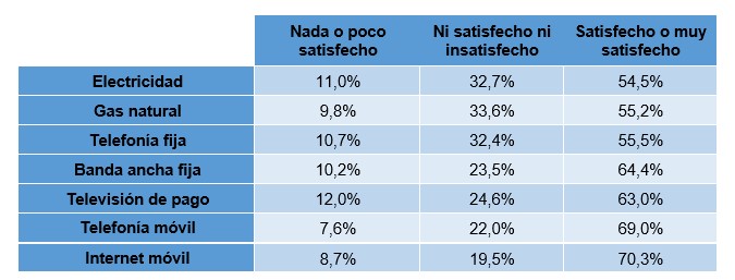 Indicadores de satisfacción con el precio de los servicios (porcentaje de hogares/individuos)