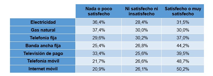 En cuanto a qué motivos producen esta insatisfacción, el precio continúa en cabeza, pero aun lejos de la consideración que tiene el gas natural, por ejemplo. Así, un 48% de los usuarios considera el Internet móvil caro, mientras que, en el caso del gas, este porcentaje aumenta hasta el 90%. Precisamente la banda ancha móvil y fija destacan – negativamente- en el indicador de “falta de calidad del servicio (por ejemplo, interrupciones del suministro)”, superando el 50% de los motivos de insatisfacción.