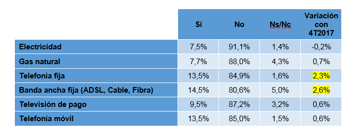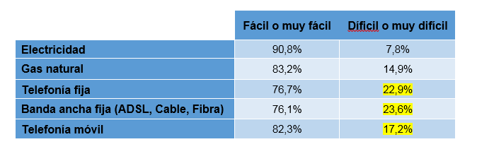 Los datos vuelven a demostrar el porcentaje de hogares que tienen productos de nuestro sector y que cambia de operador duplica a los de electricidad y son mucho mayores que aquellos que cambian de empresa gasista (salvo el caso de la TV de pago); porcentajes que además se han incrementado un 3% en un año en el caso de la telefonía fija y la banda ancha: