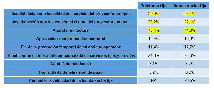 Las razones que están detrás para acometer un cambio de proveedor de comunicaciones fijas son, principalmente, las relacionadas con el precio y las tarifas, aunque la búsqueda la insatisfacción con la calidad y la atención al cliente supera el 20%: