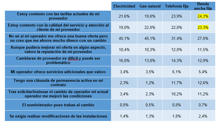 Sin embargo, 1 de cada cuatro clientes de servicios de telecomunicaciones afirma estar contento con las tarifas y la calidad que le presta su operador, y por ello, no cambian de proveedor: